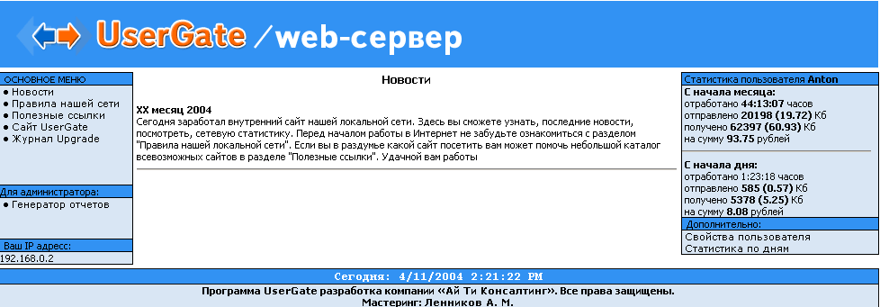 Фирме Matrix - за предоставленное сетевое оборудование.